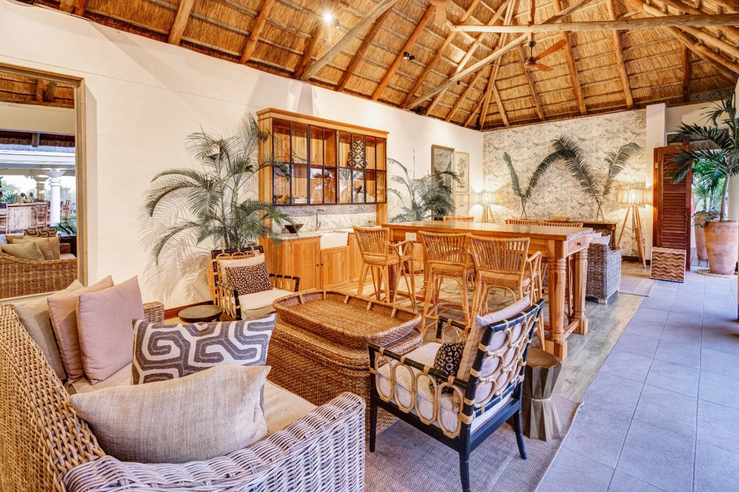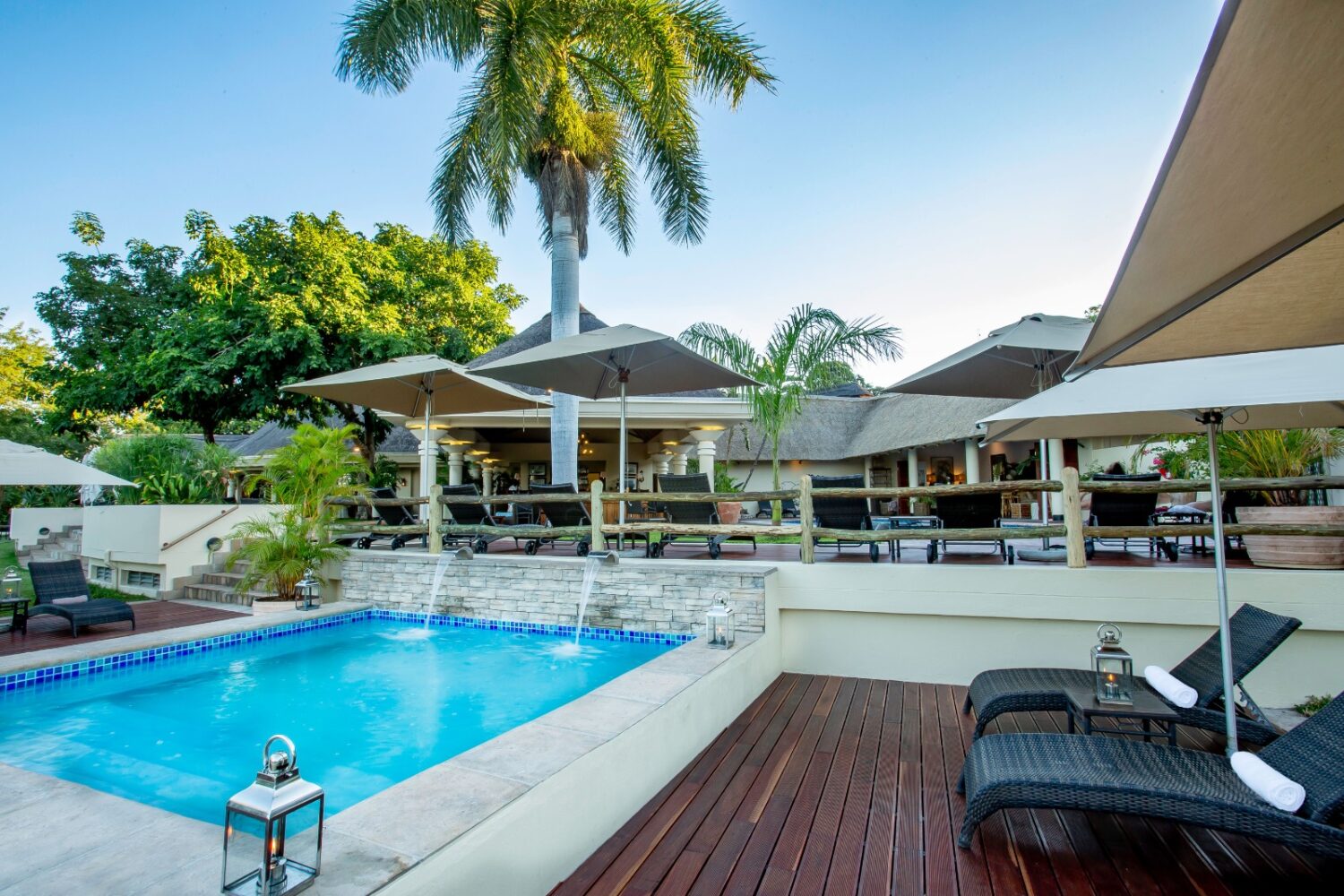 Each room features teak furnishings made from Zimbabwean railway sleepers, enhancing the African atmosphere. High-quality cotton linens and plush pillows ensure comfort during your stay.